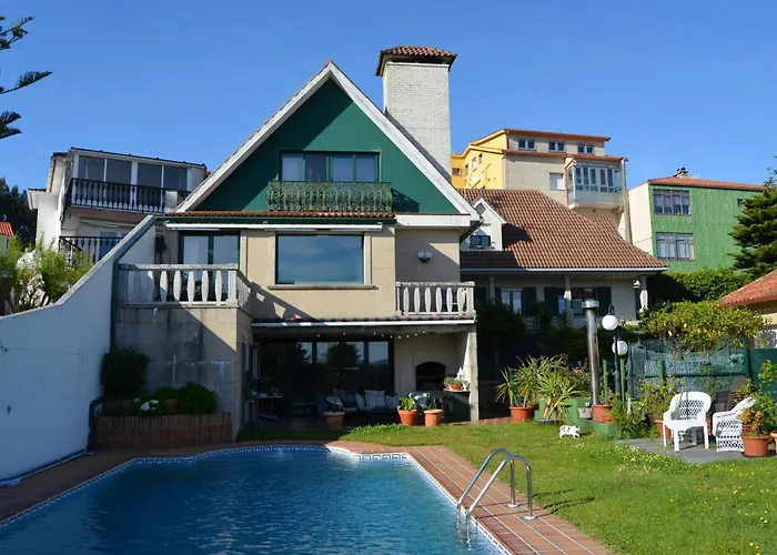 La Villa Sinas cuenta con una piscina de agua salada adultos y se encuentra en una zona de playa de Raxó, a tan solo 1 km del Mirador A Granxa. Esta villa frente a la playa, que ofrece a sus huéspedes WiFi y un aparcamiento privado gratuito, está enfrente de la Praia de Xiorto.